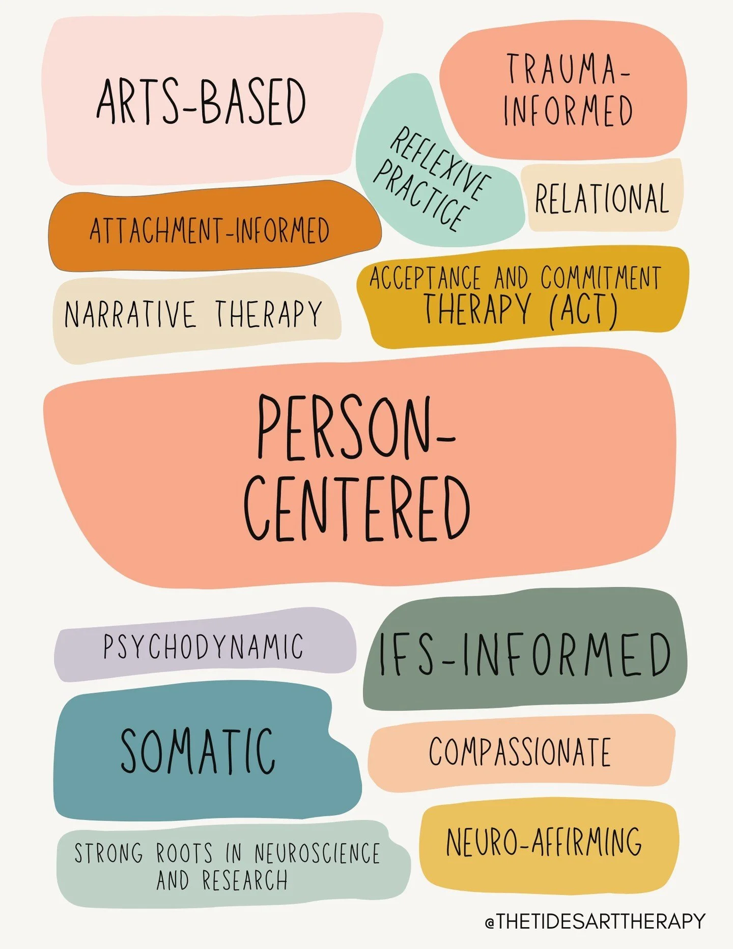Our time together is always guided by choice. You decide how much or how little you’d like to engage with art in each session. Some days, you may feel like talking the whole time without making art, while on others, you might immerse yourself fully in the creative process without saying much at all. Most often, it’s a mix of both. However you choose to show up, there is always space for you.