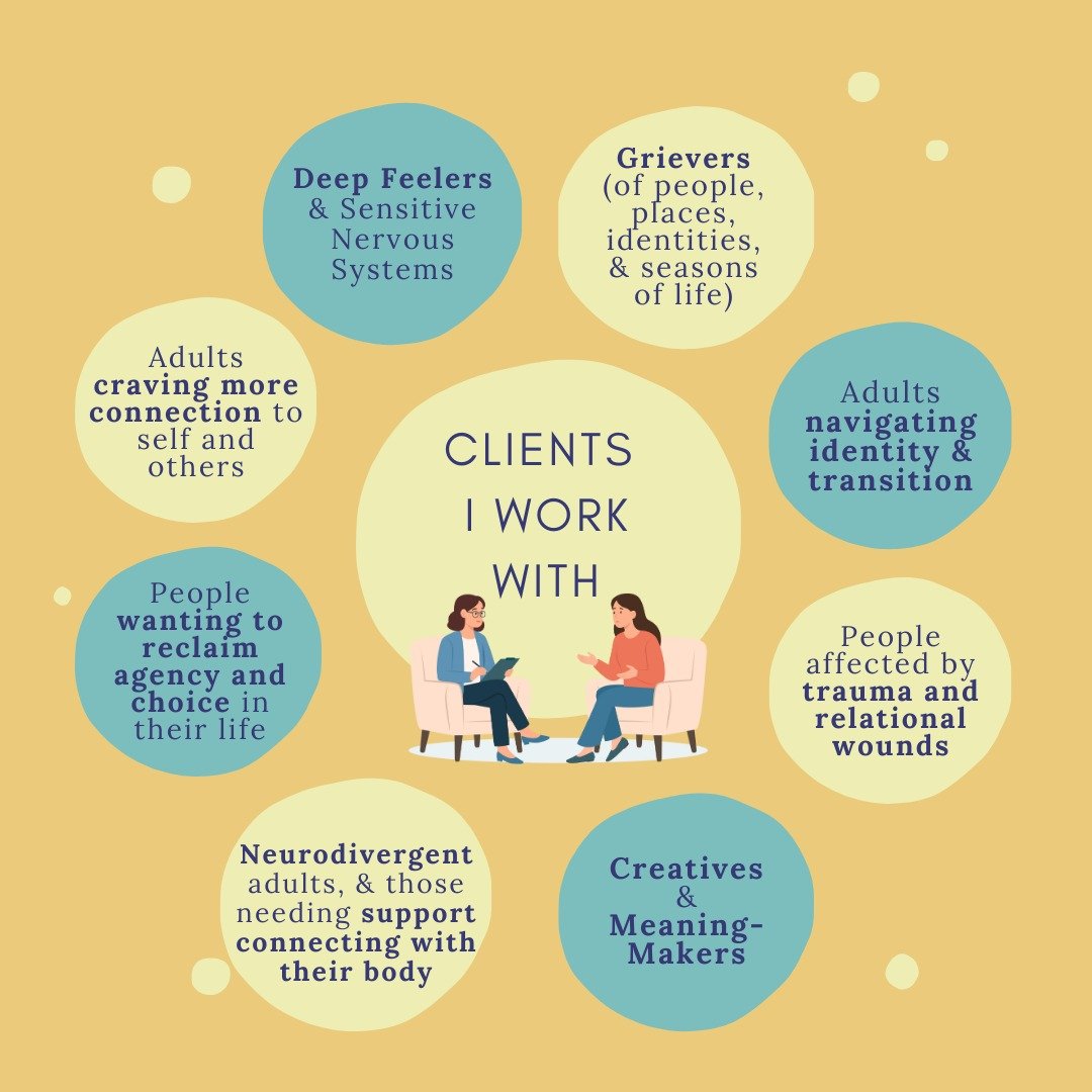 Together, we create space to gently reconnect with yourself, tending to unmet needs and supporting you in showing up with more presence and compassion, both for yourself and for the people in your life.